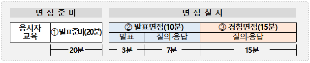 서류전형이 1차 시험인 분야의 경우 발표면접에서 해당 경채분야의 전문지식을 평가하고, 발표면접시간이 연장 운영될 수 있습니다.