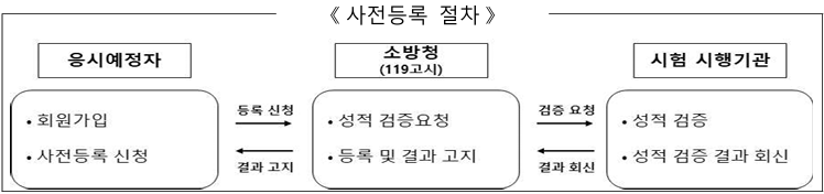 - 소방공무원 채용시험 응시예정자는 아래 내용을 참고하여 사전등록 하시기 바랍니다.