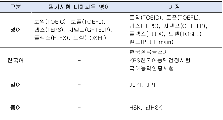 1) 필기시험 대체 과목(영어, 한국사) 성적 유효기간 변경