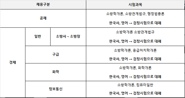 필기시험은 공채 및 경채 구분에 따라 아래와 같습니다.