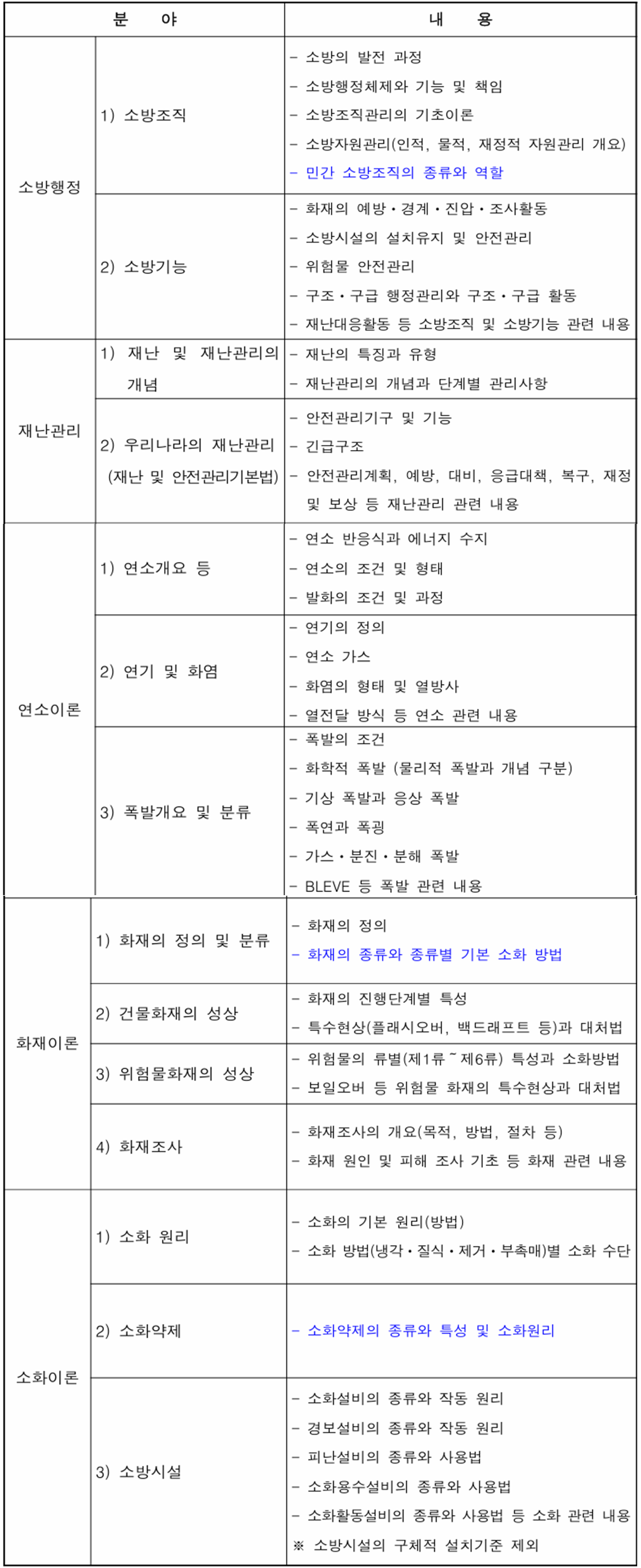 7) 「소방학개론 범위」 관련 용어 정리 등