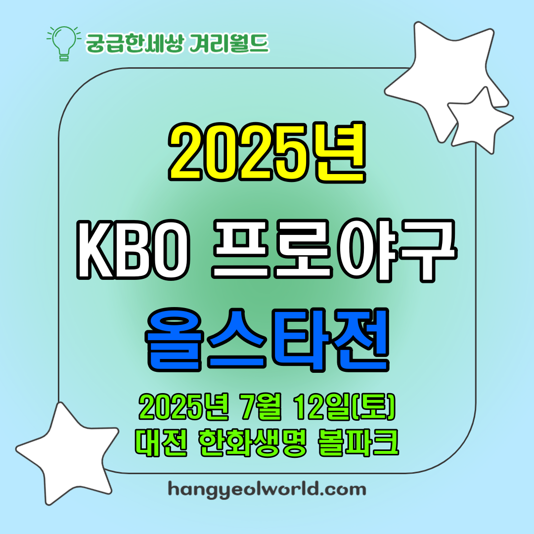 2025년 KBO 프로야구 올스타전은 7월 12일(토)에 대전 한화생명볼파크(신축 야구장)에서 개최됩니다.